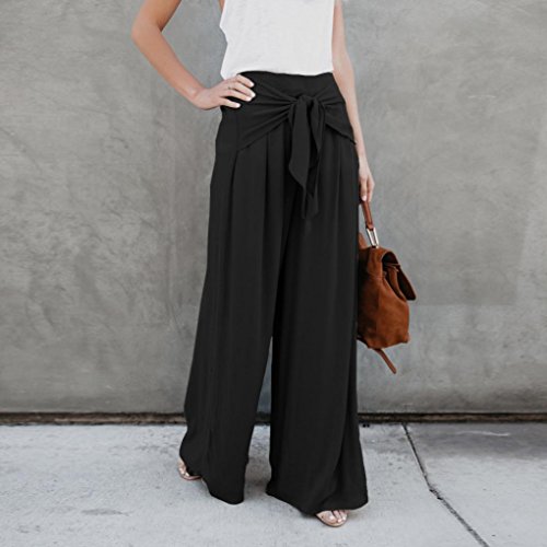cinnamou Damen Hosen Elegant High Waist Stretch Einfarbig breites Bein Bell Bottom Palazzo Flare Pants Sommerhose…